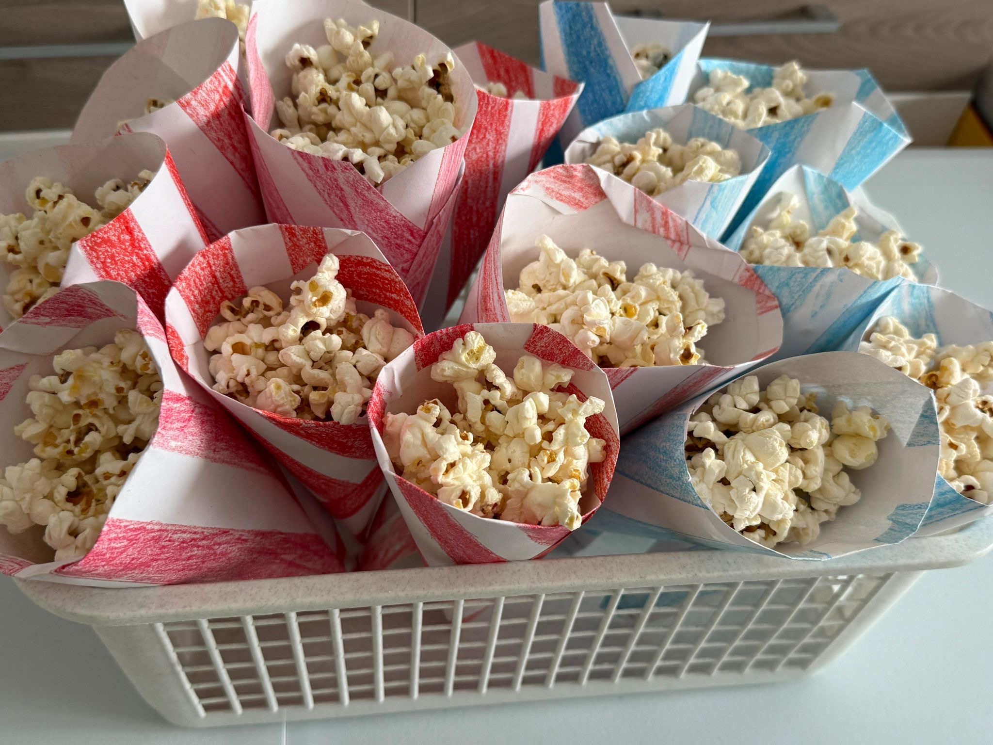 Unsere Gäste wurden mit selbstgemachten Kinoeintrittstickets begrüßt, bevor es auf die „große Leinwand“ ging. Während Jack und Rose über den Atlantik tanzten, duftete es bei uns nach frischen Schnittchen, Kaffee und Popcorn.
